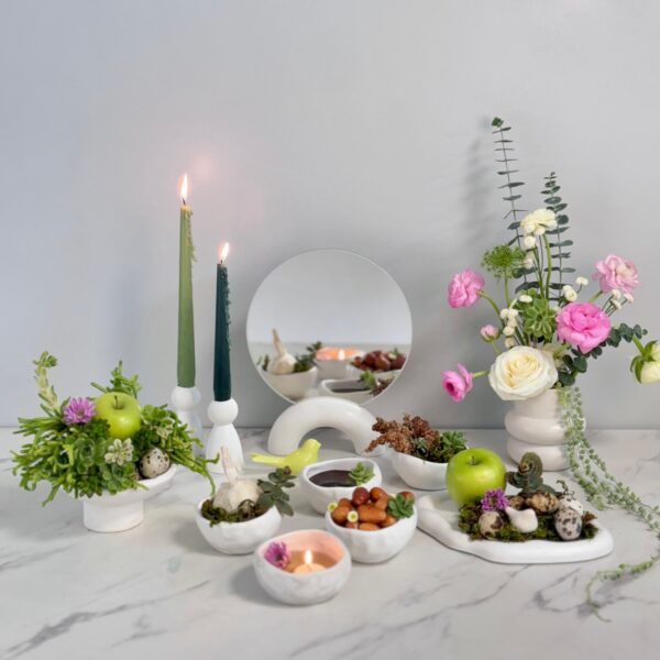 هر ست شلمل یک عدد آینه دو عدد جاشمعی و شش عدد ظرف هفتسین میباشد