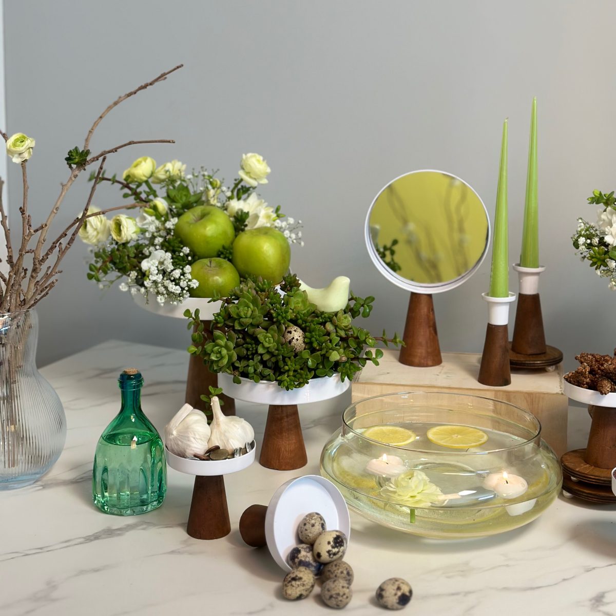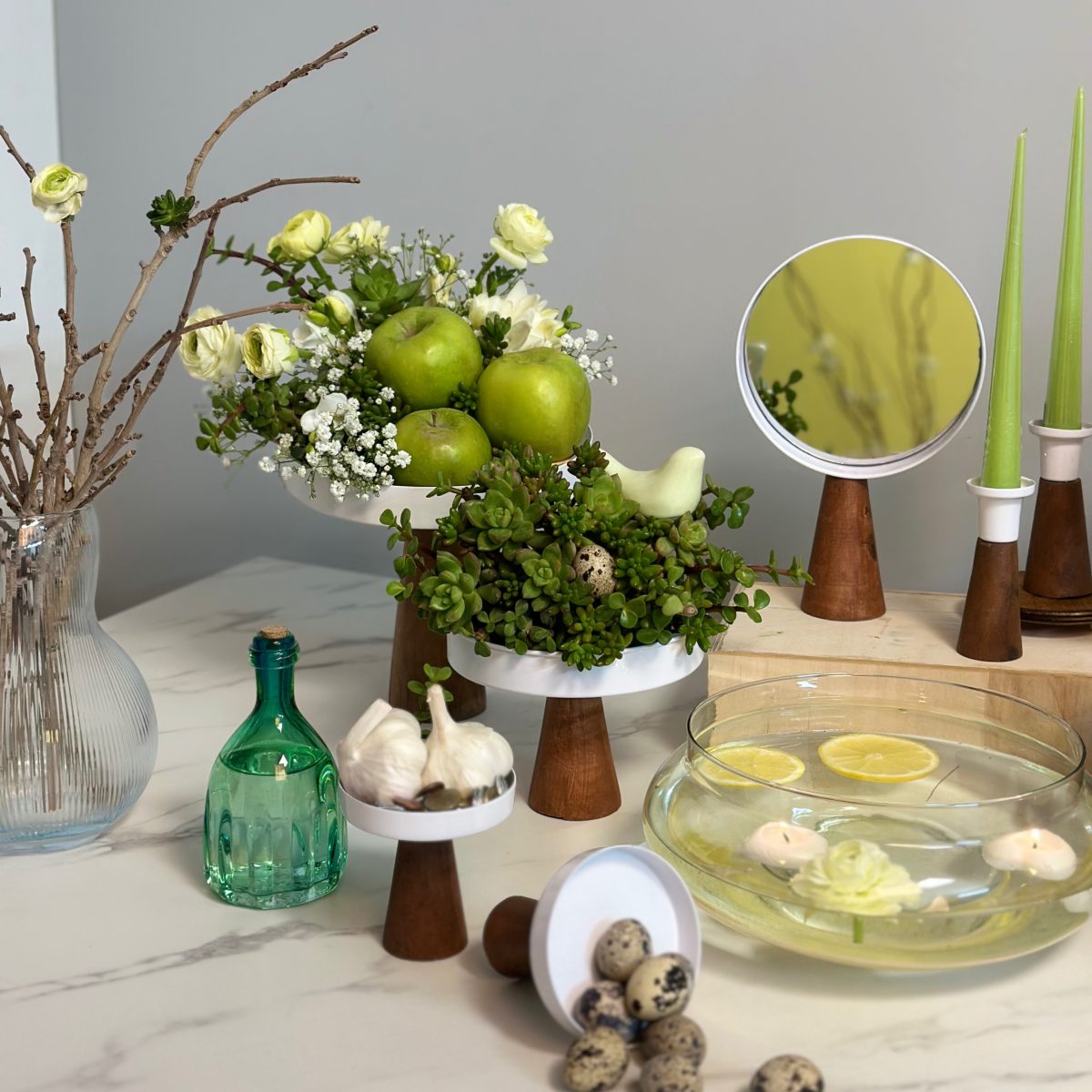 دو شمعدان و یک آینه