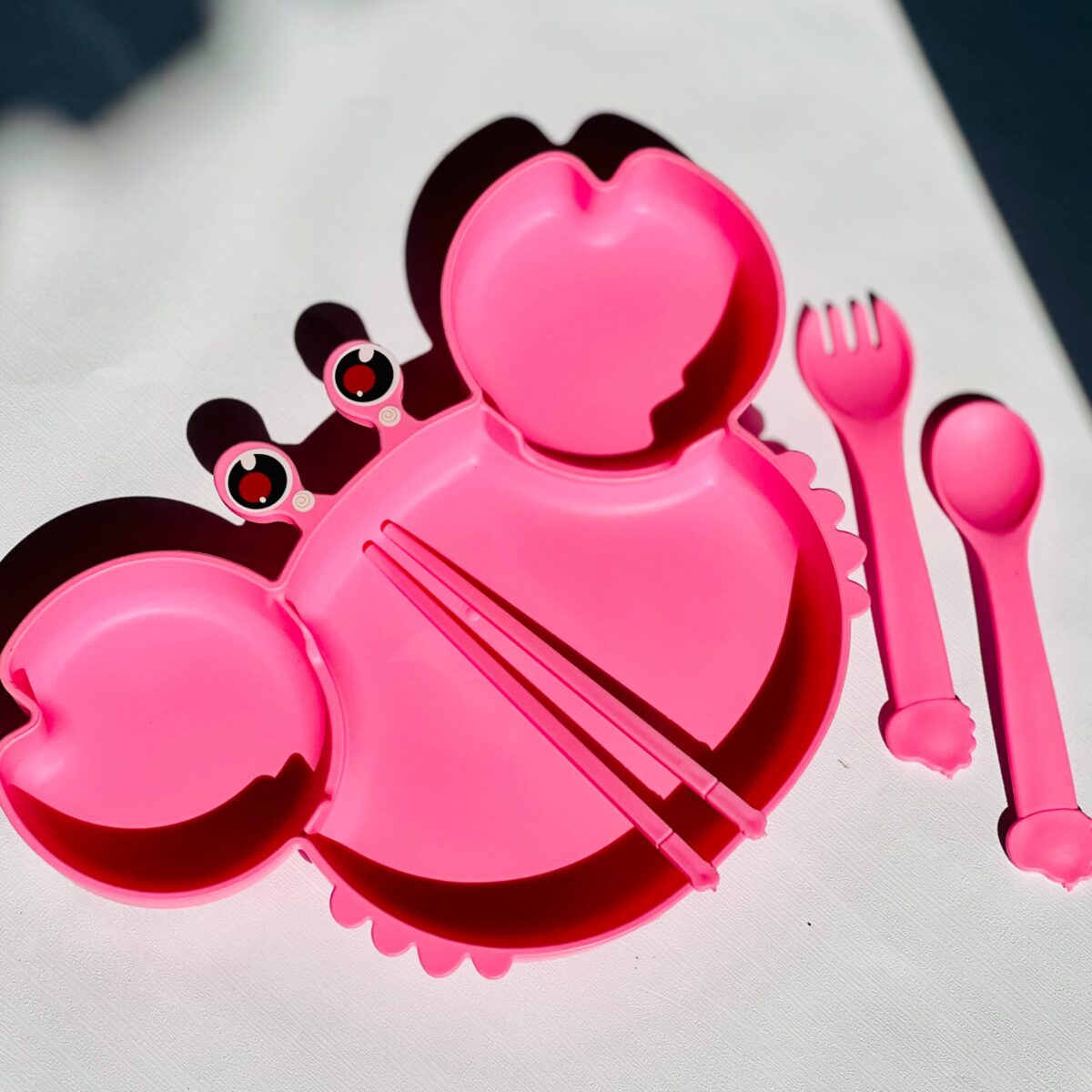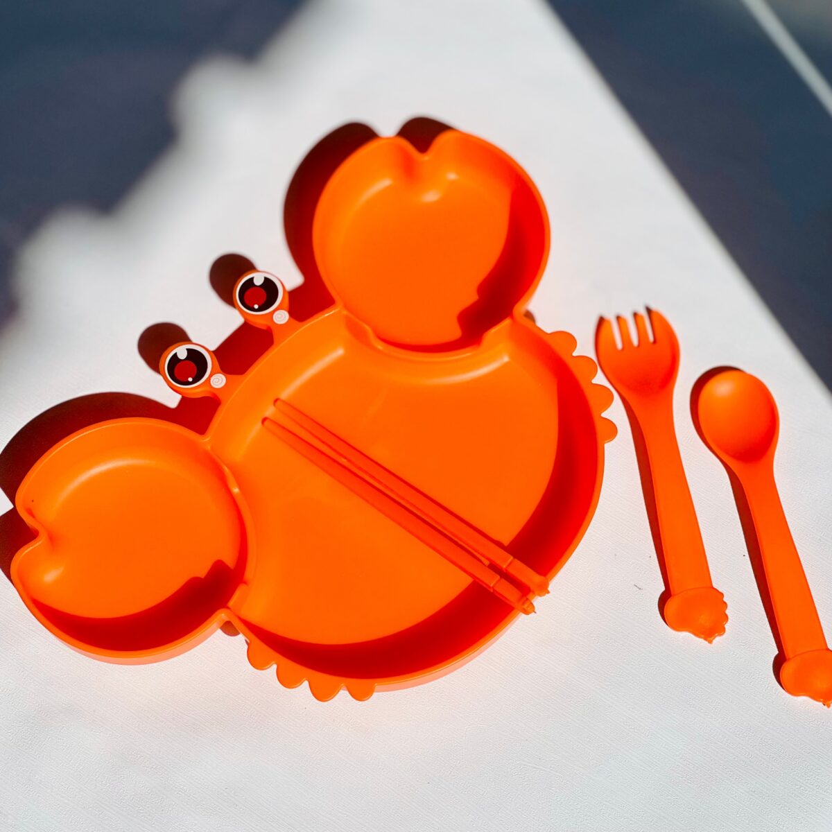 ظرف غذای آقای خرچنگ همراه با قاسق و چنگال و چاپستیک